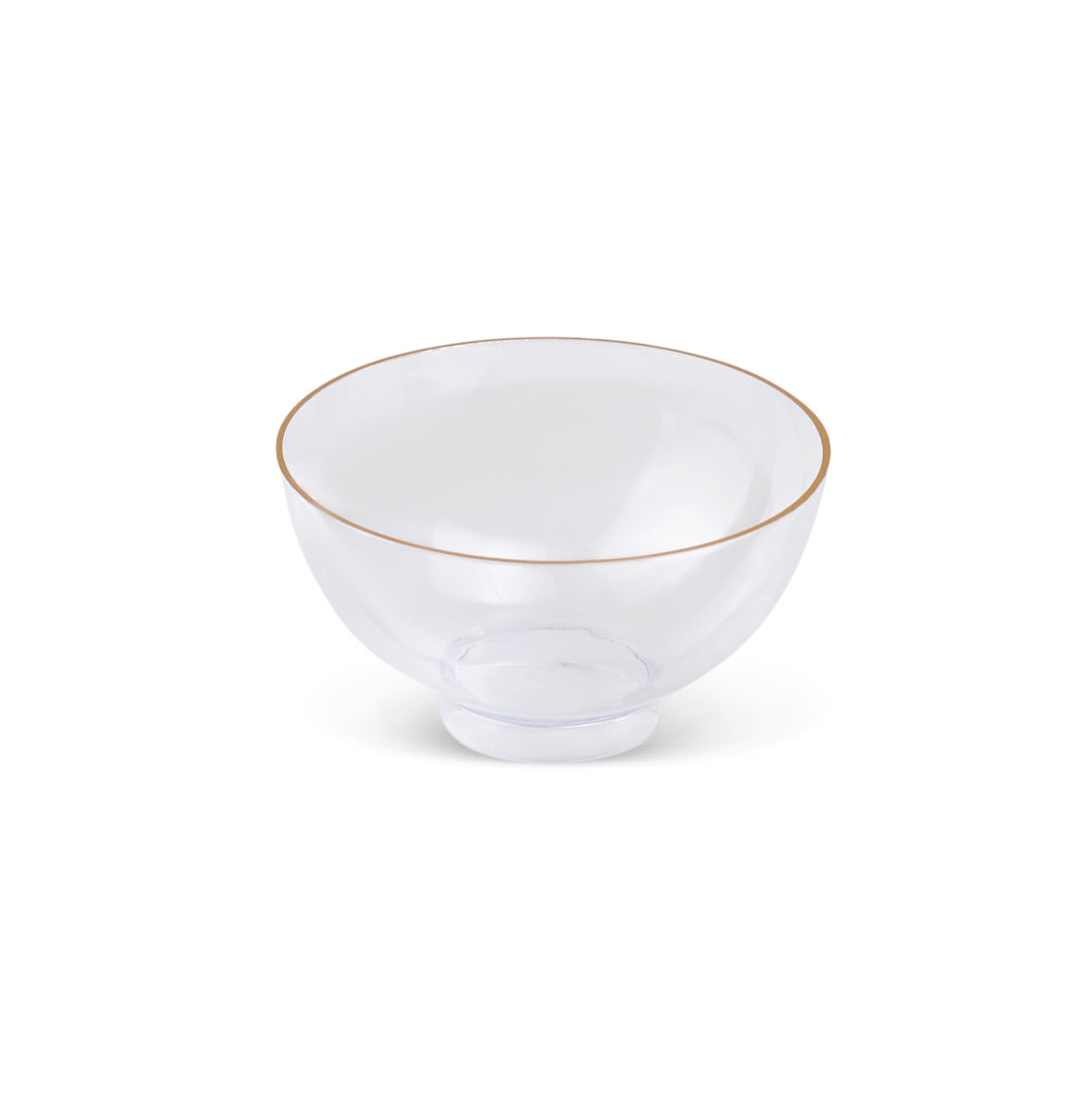 Elevate your presentation with these classic Clear Mini Appetizers with Gold Rim, perfect for serving with style and ease.