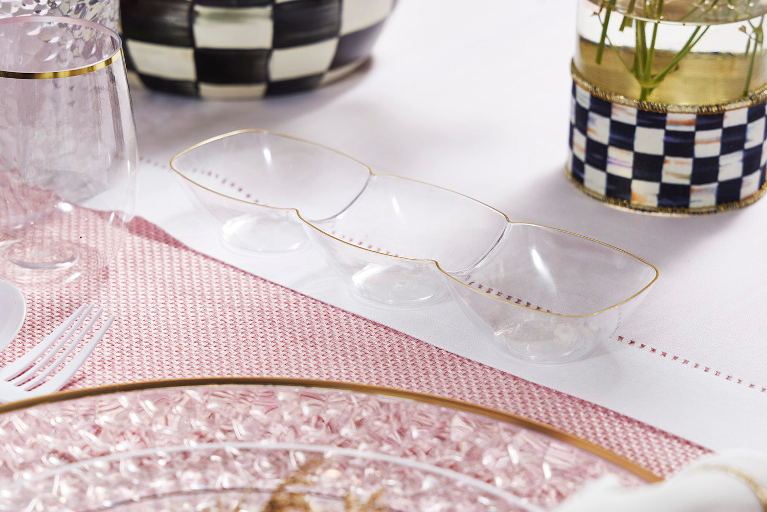 Serve those snacks and dips in style. Beautifully presented in this three-sectional tray.